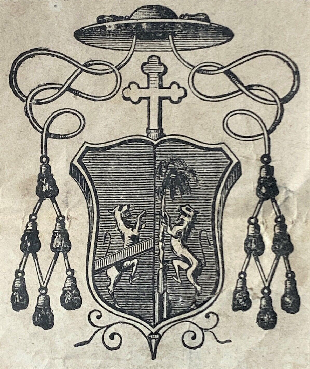 partito: nel 1° d’azzurro al leone rivolto, sostenuto dalla pianura erbosa, il tutto al naturale, e attraversato dalla sbarra abbassata di rosso; nel 2° d’azzurro al leone controrampante alla palma sostenuta su tre monti, poggianti su una campagna, il tutto al naturale